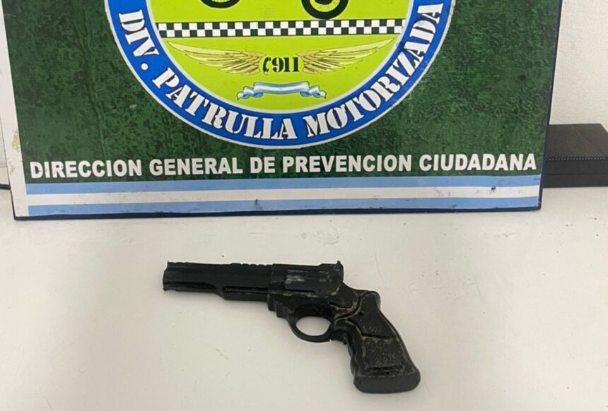 Durante la requisa de rigor frente a testigos, los efectivos policiales se llevaron una sorpresa: el arma con la que el delincuente había sembrado el terror en el drugstore era, en realidad, una réplica de revólver.